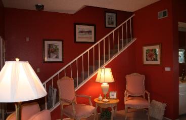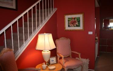 going up her staircase.